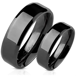 Eenvoudige maar mooie verlovings- of trouwring in roestvrij staal met zwart gecoate middenstreep.