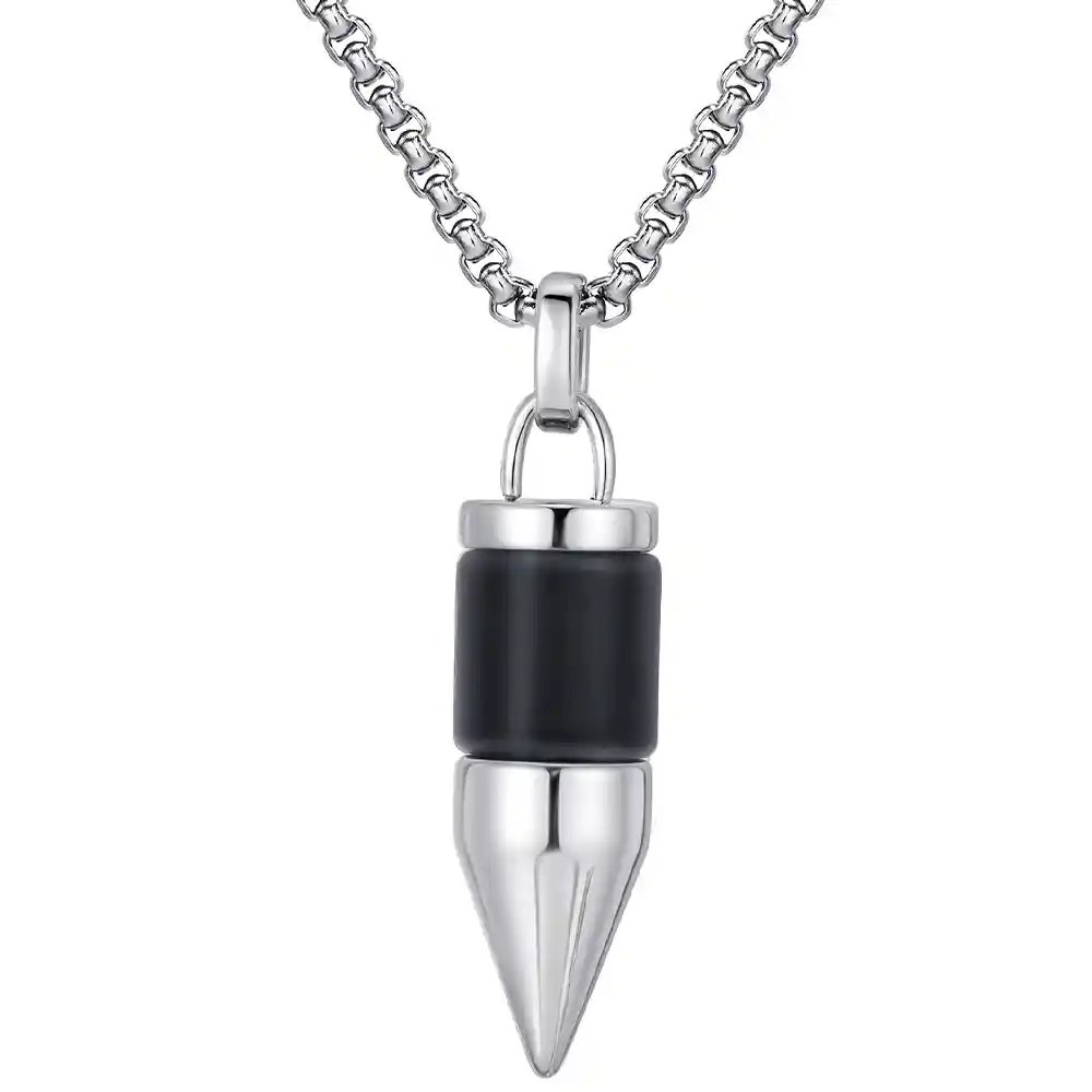 BulletCore Steel Necklace is gemaakt voor de man die durft op te vallen. De hanger, geïnspireerd door een kogel, is vervaardigd van roestvrij staal met een zwart middengedeelte voor een ruige en mannelijke uitstraling.