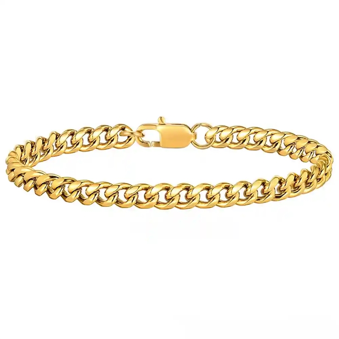 Armband van verguld roestvrij staal met cubaanse schakels.