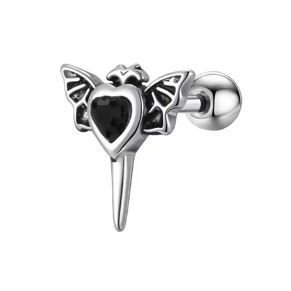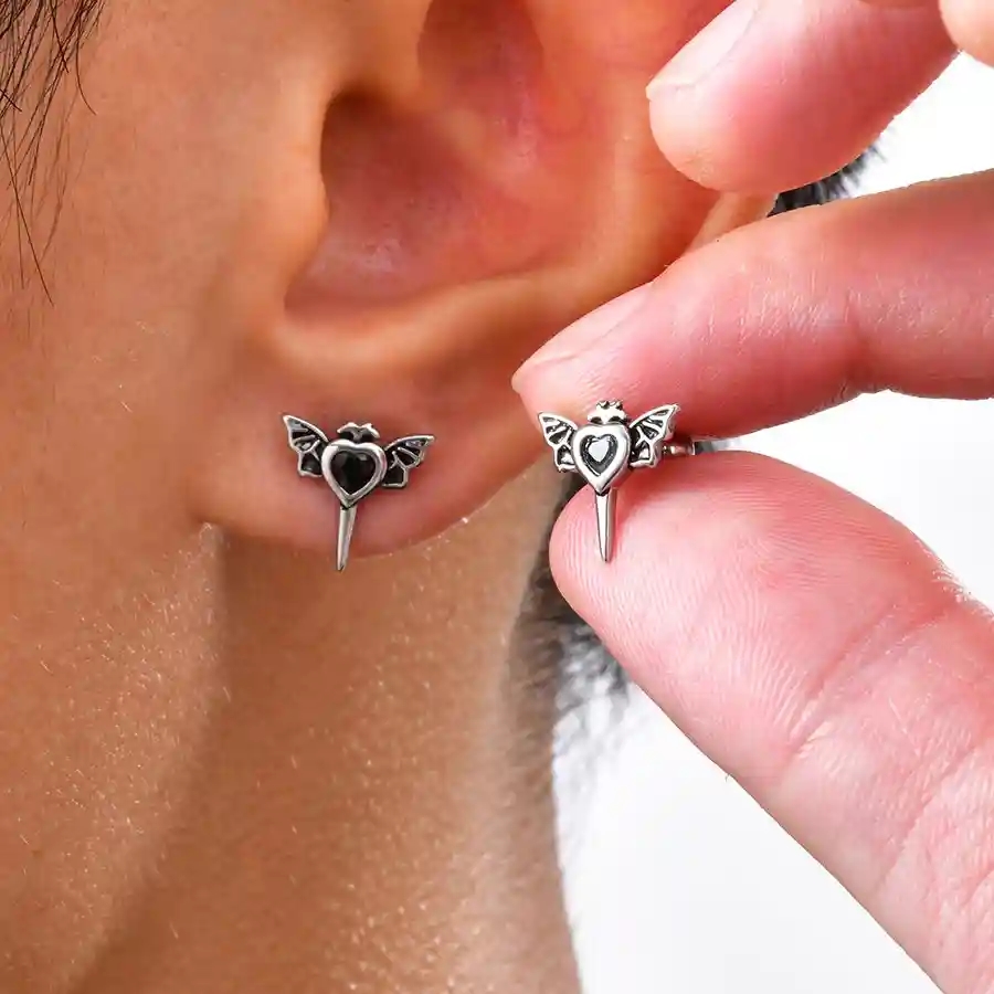 Geef je look een ruwe en opvallende rand met Dark Wing Heart, een mannelijke heren oorstekker in roestvrij staal, ontworpen voor mannen die durven op te vallen. De donkere hartvormige steen gecombineerd met de gedetailleerde vleugels en de spitse afwerking creëert een coole, gotische en edgy uitstraling, die perfect past bij streetwear, rockstijl of een minimalistische zwarte outfit.