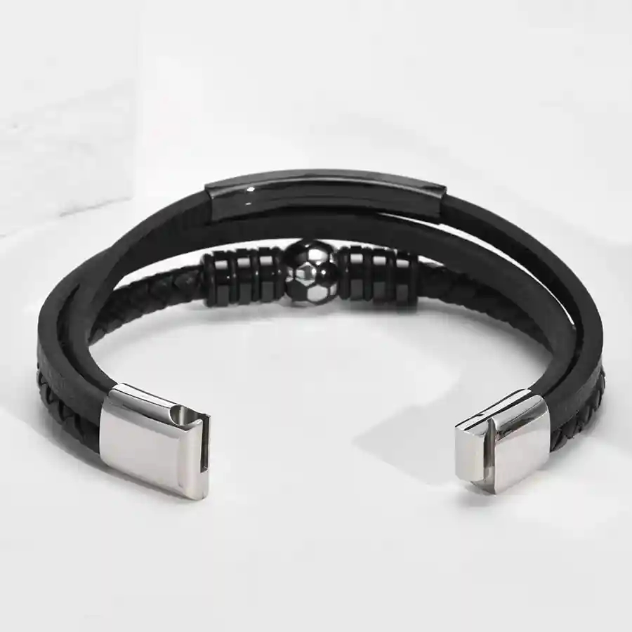De dubbele leren band geeft de armband een krachtige mannelijke uitstraling, terwijl de magnetische sluiting comfort en gemakkelijke bediening garandeert. Een perfecte keuze voor zowel dagelijks gebruik als wedstrijddagen – of als cadeau voor een echte voetballiefhebber.