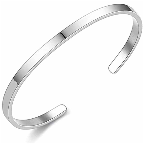 Eenvoudig dun 4mm breed en in hoogglans gepolijst roestvrij staal.