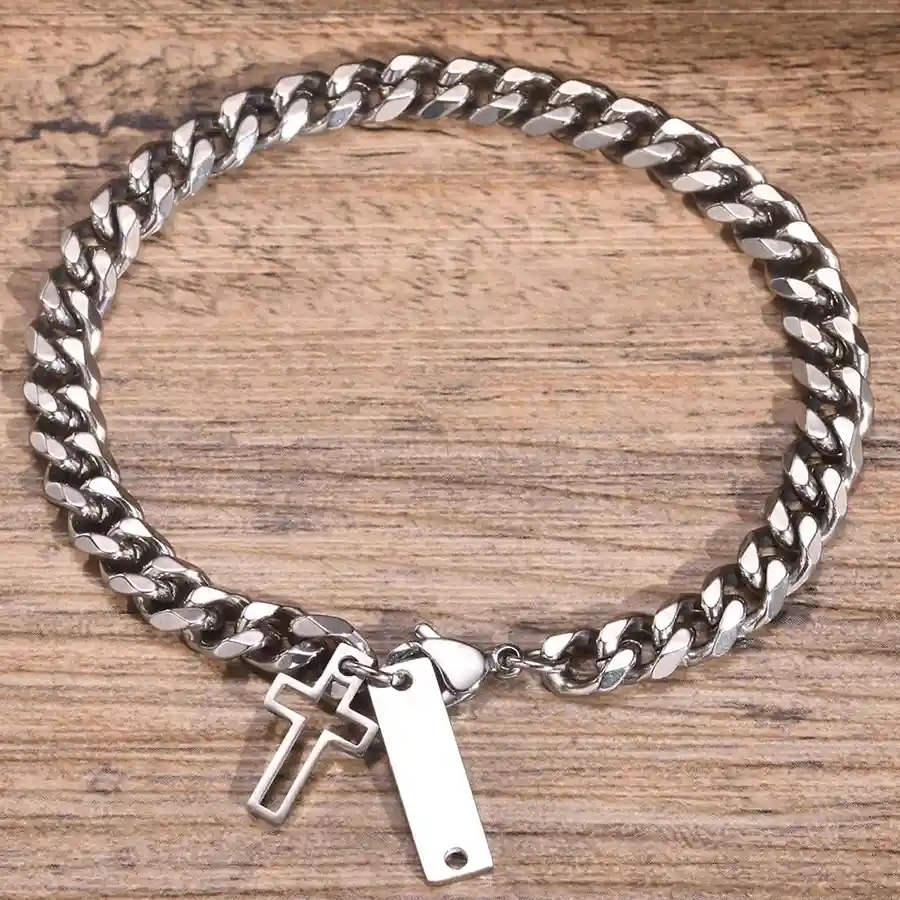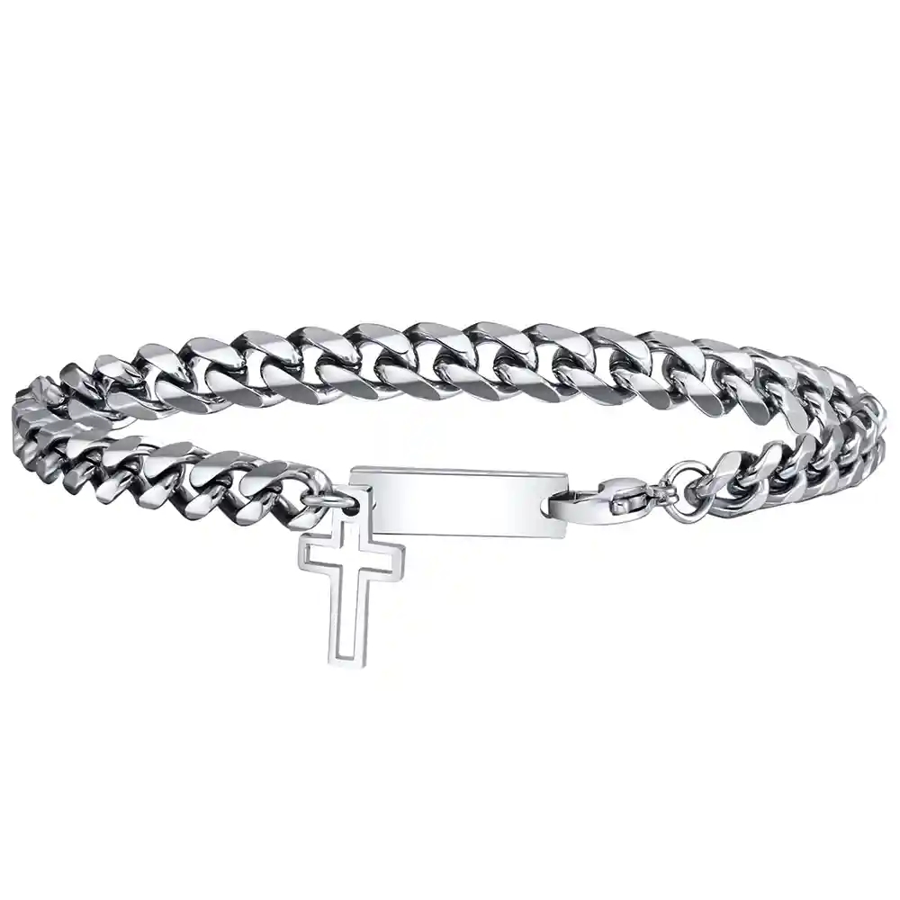 Krachtige en stijlvolle herenarmband in roestvrij staal met een klassiek kruisbedel.