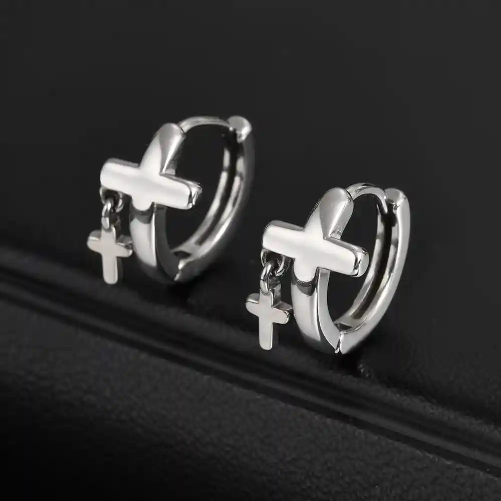 Herenoorbel in roestvrij staal met dubbel kruisdesignHerenoorbel in roestvrij staal met dubbel kruisdesign