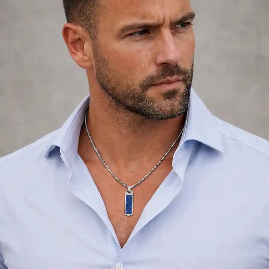 De ketting heeft een lengte van 60 cm en de hanger meet 1,2 x 4 cm.