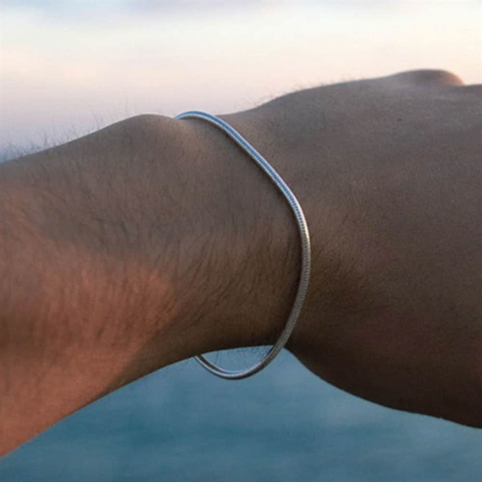 Deze armband in titanium/staal is 2mm dik met karabijnsluiting.