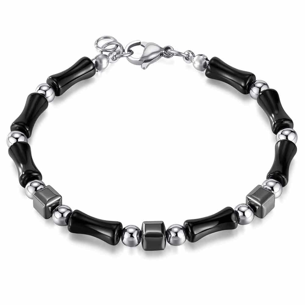 De onyx hametiet kralenarmband is een stijlvol en elegant accessoire voor elke gelegenheid. Hij is gemaakt van zwarte onyx en hametiet kralen, die perfect gecombineerd zijn met een roestvrijstalen sluiting. De armband heeft een verstelbare lengte van 17-18,50 cm. De zwarte kleur en het parelmateriaal geven je stijl een verfijnde touch. Een must-have sieraad voor elke parelliefhebber.