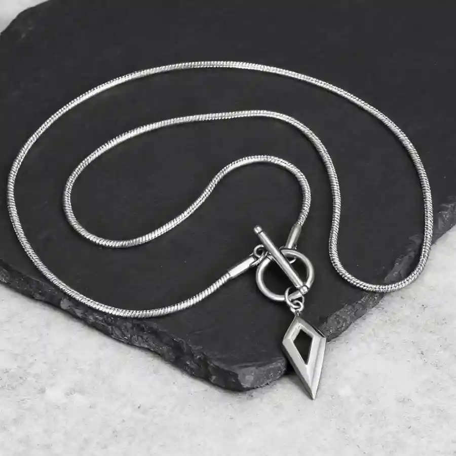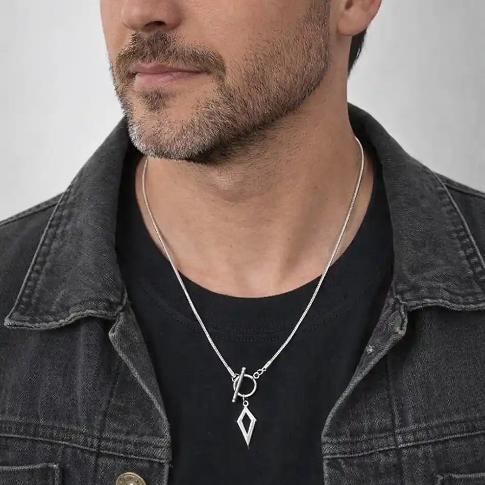 Orion ketting van Marjoe is een stijlvolle en moderne ketting voor mannen met een unieke geometrische hanger. Het eenvoudige ontwerp, gecombineerd met de opvallende vorm, geeft het sieraad een mannelijke en minimalistische uitstraling die perfect past bij de moderne man.