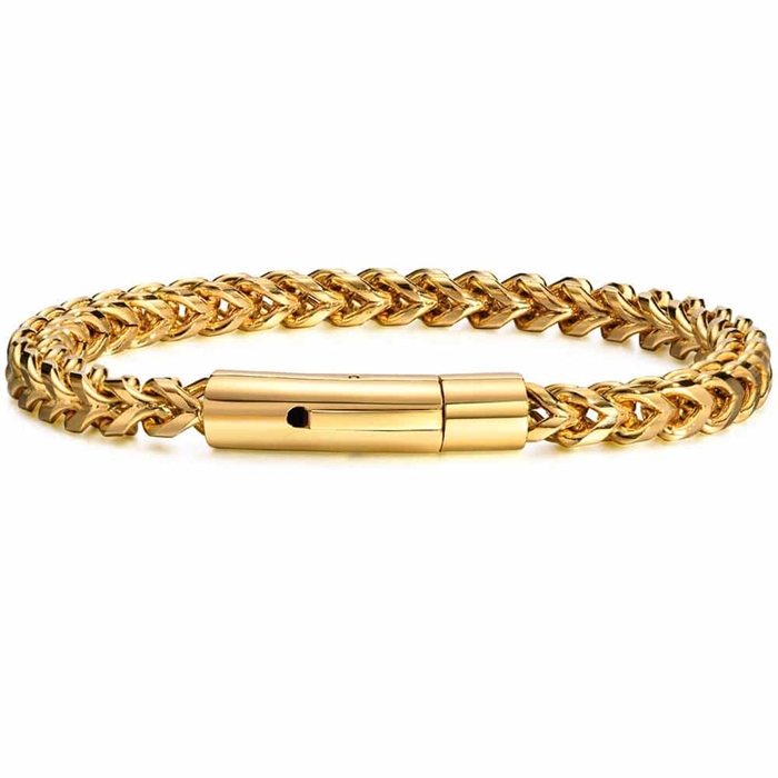 Stijl en alles wat je nodig hebt met deze prachtige herenarmband in verguld IP en met een veiligheidssluiting.