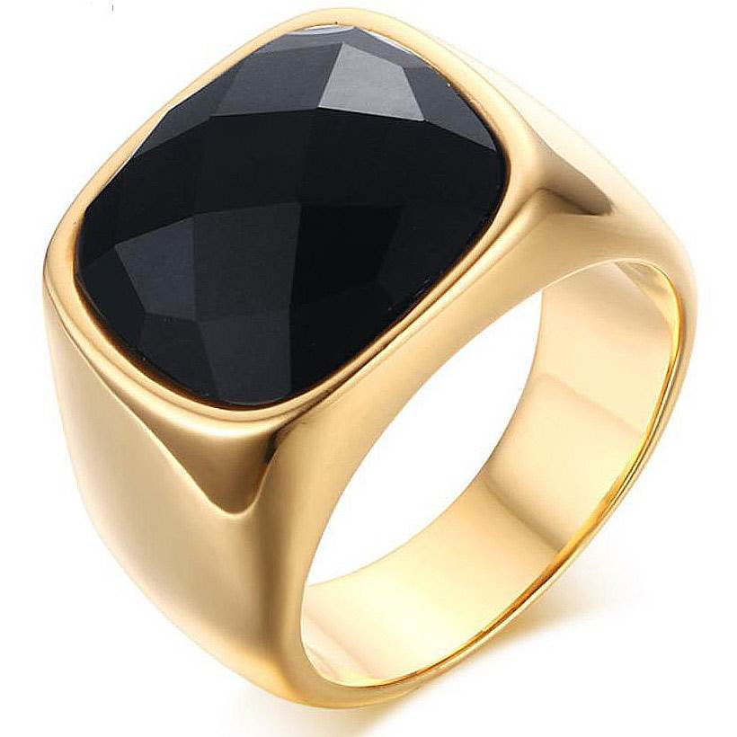 Grote mooie vergulde herenring met zwarte facetgeslepen agaat steen.