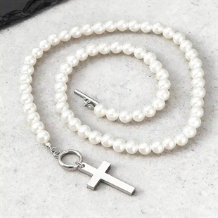 Het parelsnoer is allang vernieuwd, en daarom zijn er tegenwoordig veel meer parels dan die je in oesters kunt vinden. Hier op de site hebben we bijvoorbeeld veel kettingen met parels gemaakt van onyx, een ongelooflijk harde edelsteen die meestal zwart is. Daarnaast hebben we kettingen met lava, hematiet en agaatparels. Laatstgenoemde is een halfedelsteen die soms meerdere kleuren kan hebben. De meeste van onze parelsnoeren zijn uitgerust met stijlvolle hangers in de vorm van symbolen zoals zwaarden, kruisen en schedelsieraden. Ons kleurenpalet is donker met parels in de kleuren zwart, zilver, goud en rood. Op die manier ben je verzekerd van een parelsnoer met een mannelijk uiterlijk dat bij de meeste garderobes past.