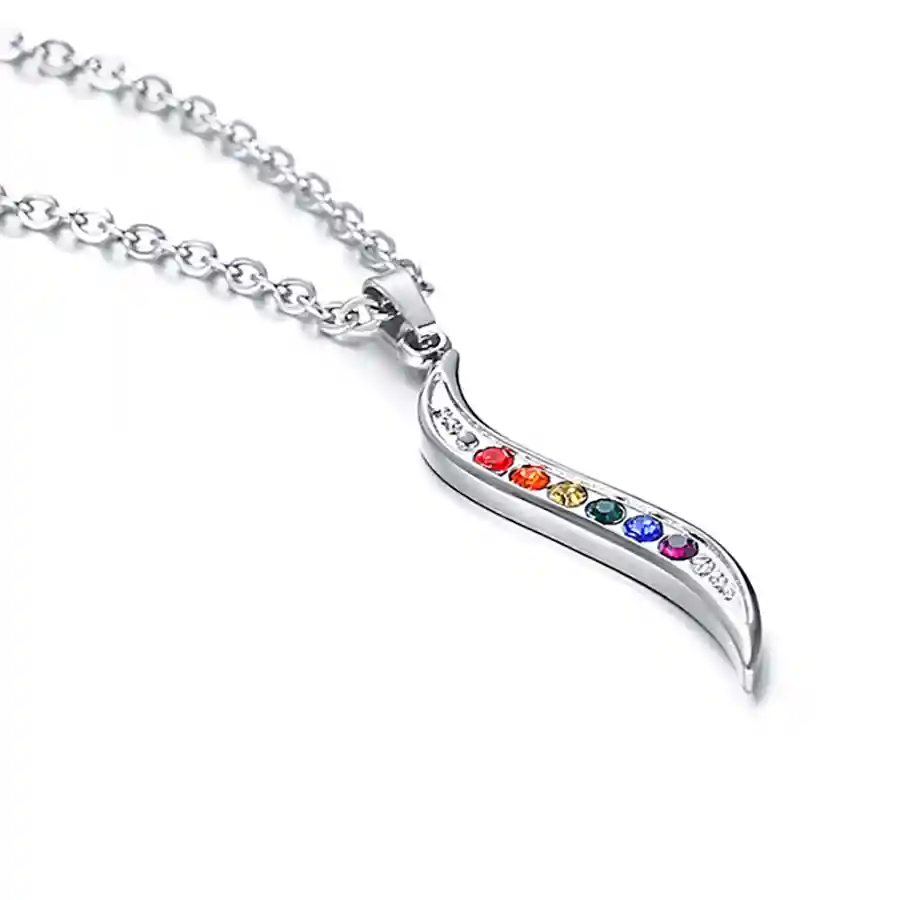 Pride Wave ketting in roestvrij staal met regenboogkleurige stenen – LGBT+ sieraadPride Wave ketting in roestvrij staal met regenboogkleurige stenen – LGBT+ sieraad