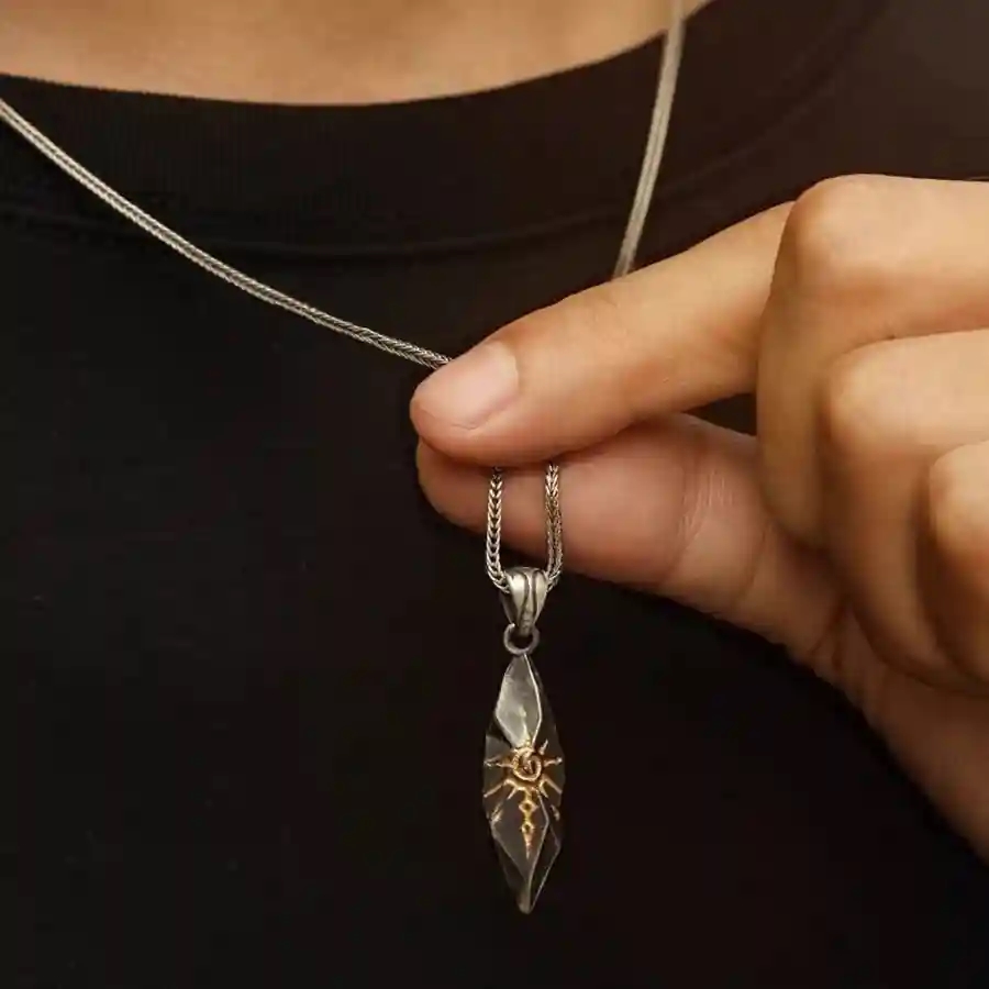 Solar ketting voor mannen combineert ruwe details met een elegant, modern uiterlijk. De ketting is gemaakt van duurzaam roestvrij staal en meet 58 cm – een lengte die natuurlijk op de borst valt en perfect past bij zowel een t-shirt als een overhemd.