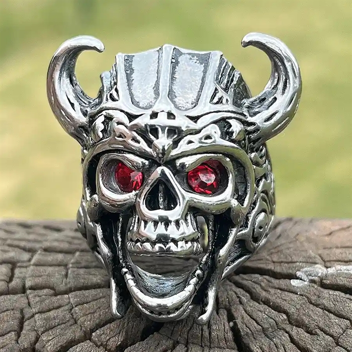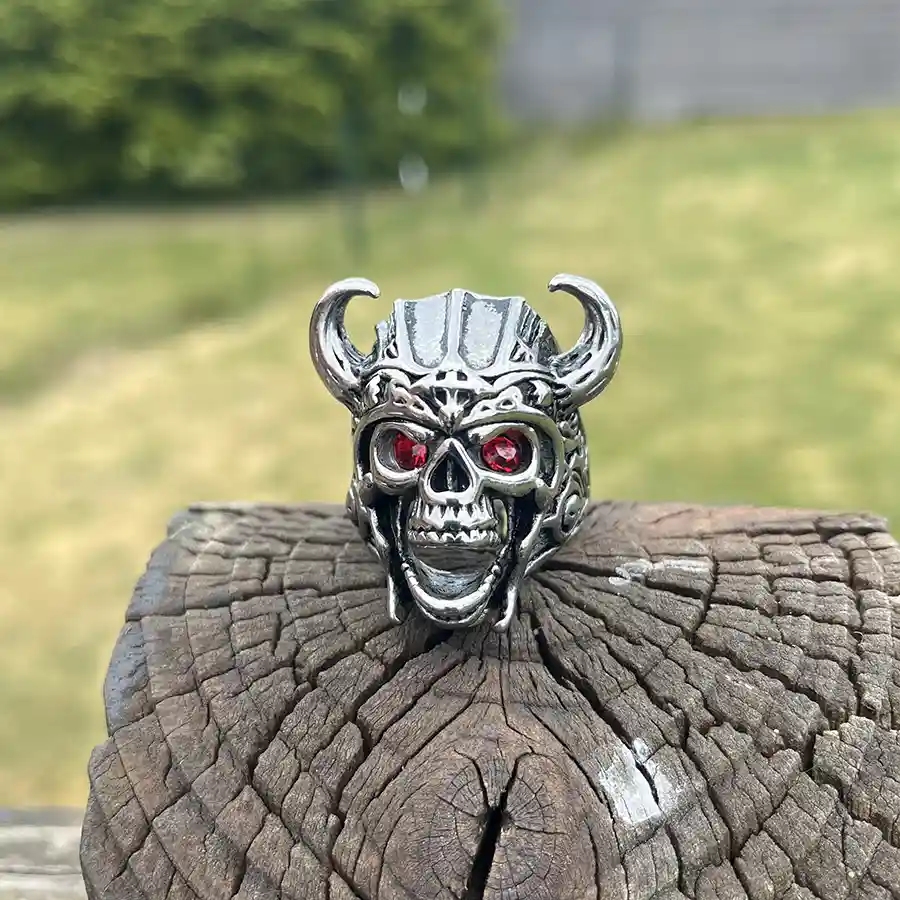 Viking doodshoofdring van roestvrij staal.Viking doodshoofdring van roestvrij staal.
